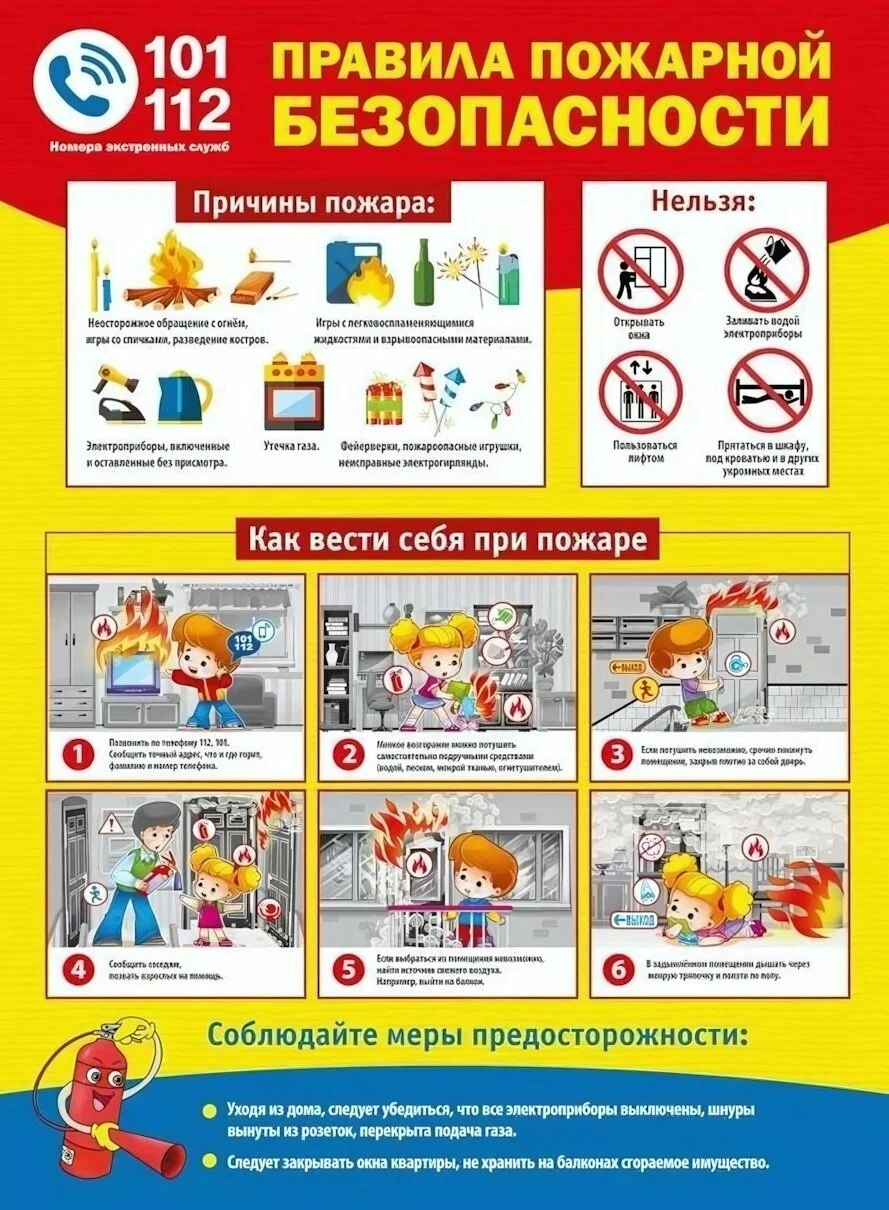 - предупредить о пожаре соседей, если необходимо, они помогут ребенку вызвать пожарных;